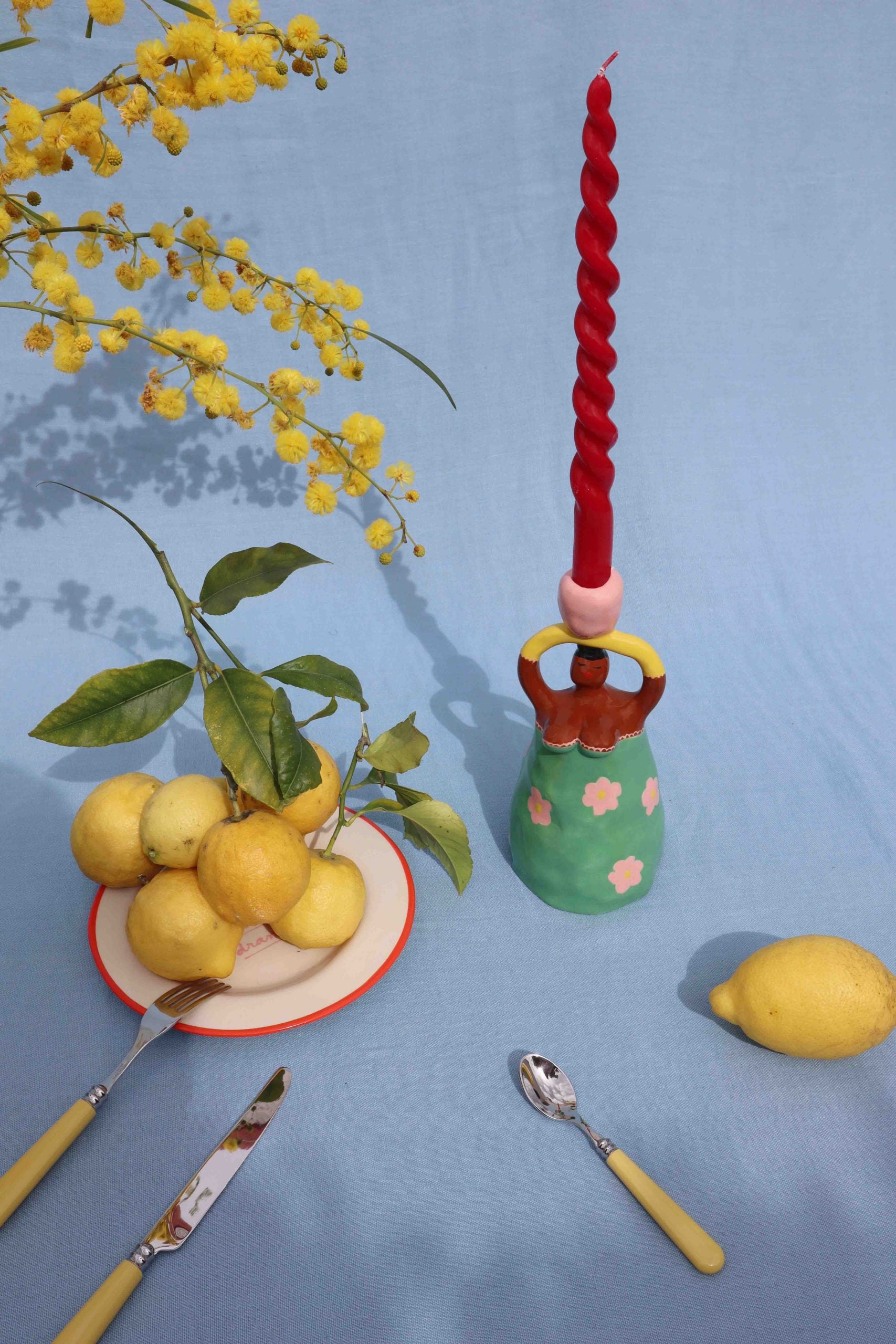 Earthenware candle holder hand painted with love and naughtiness in Portugal