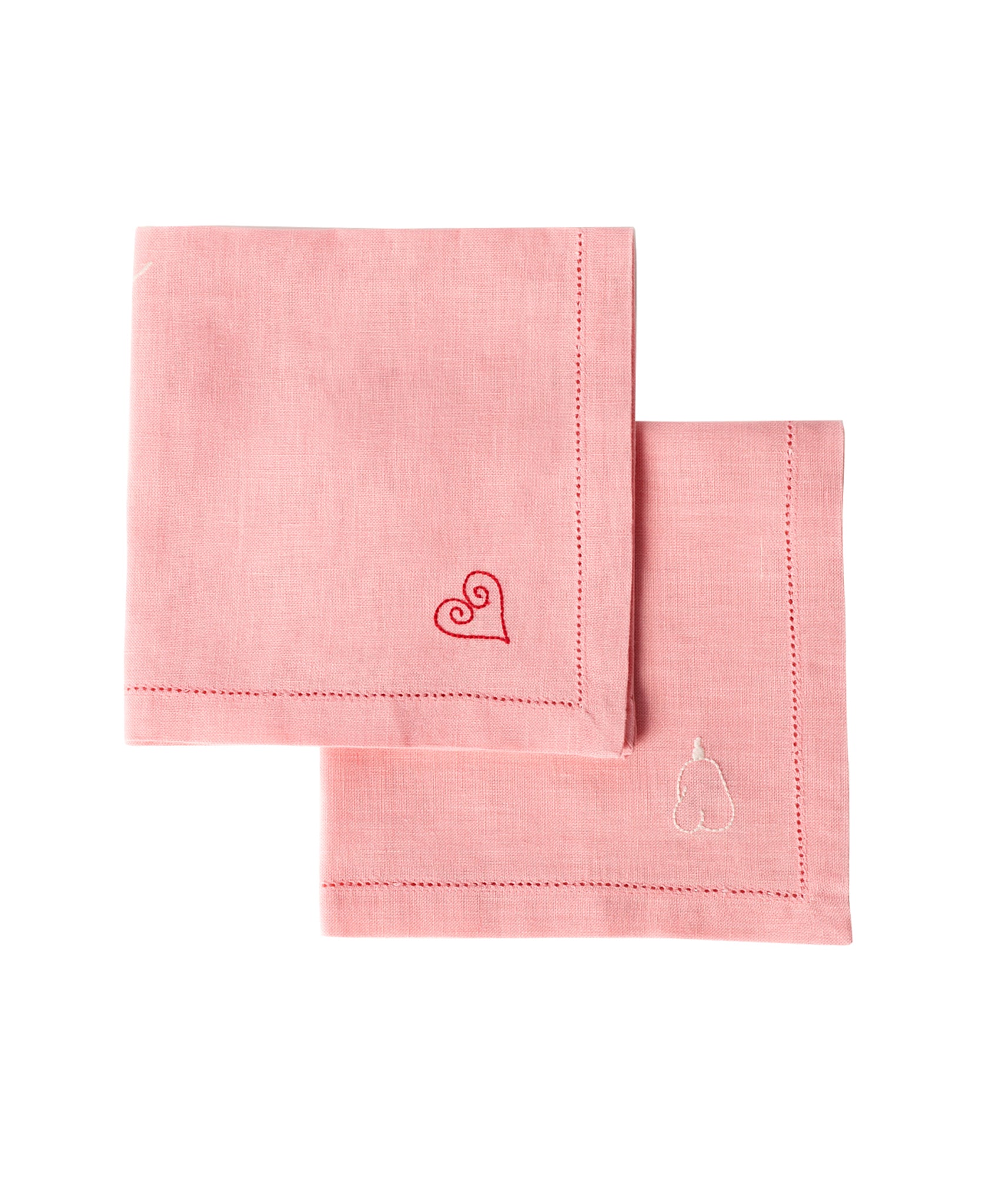 Set of 4 organic Linen Pink Napkins embroidered in Portugal by artisans.