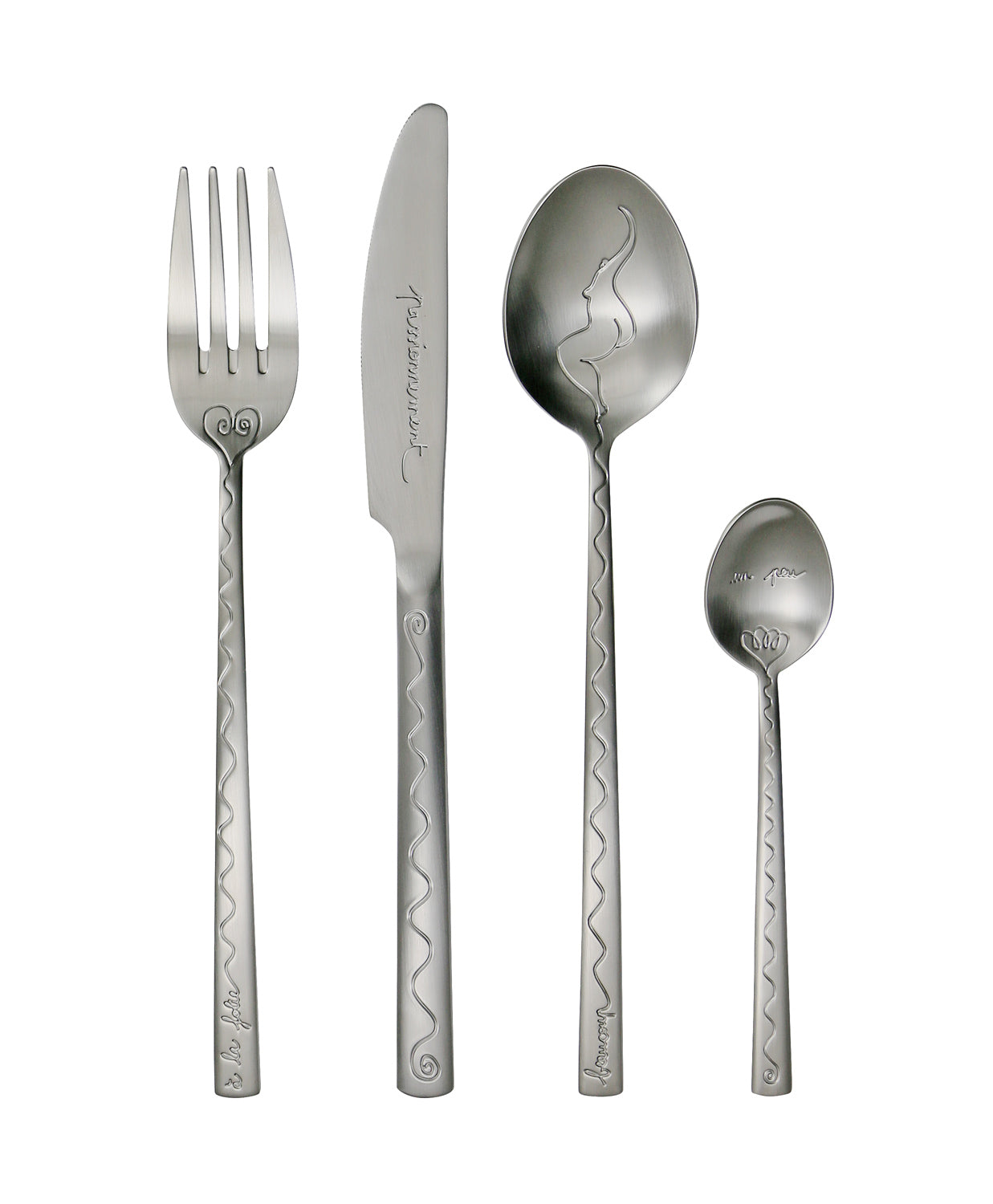 The cutlery set is composed by stainless steel 18/10, (AISI 304) and the knives are made in stainless steel 18/0 (AISI 420)