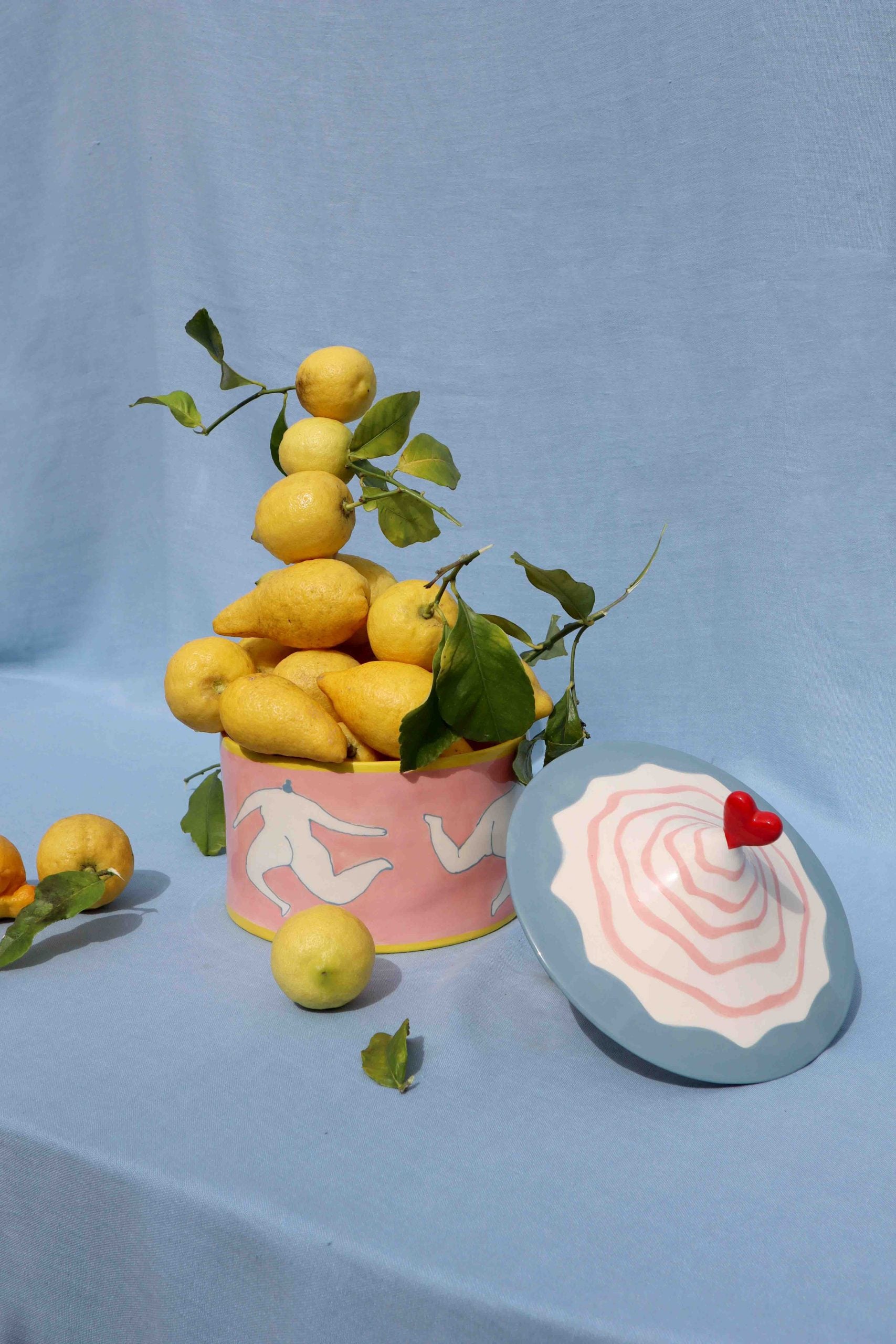Large earthenware box hand painted with love and naughtiness by artisans in Portugal.
