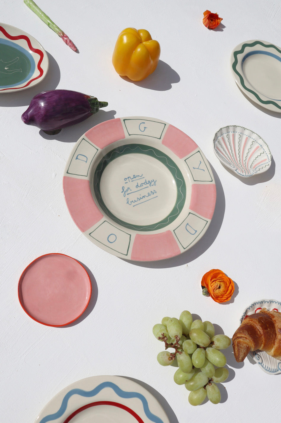 Stoneware dinner plate hand painted with love and naughtiness in Portugal by artisans