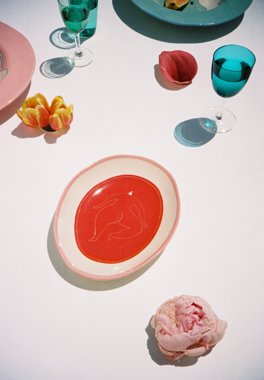 Stoneware oval plate hand painted with love and naughtiness in Portugal by artisans.