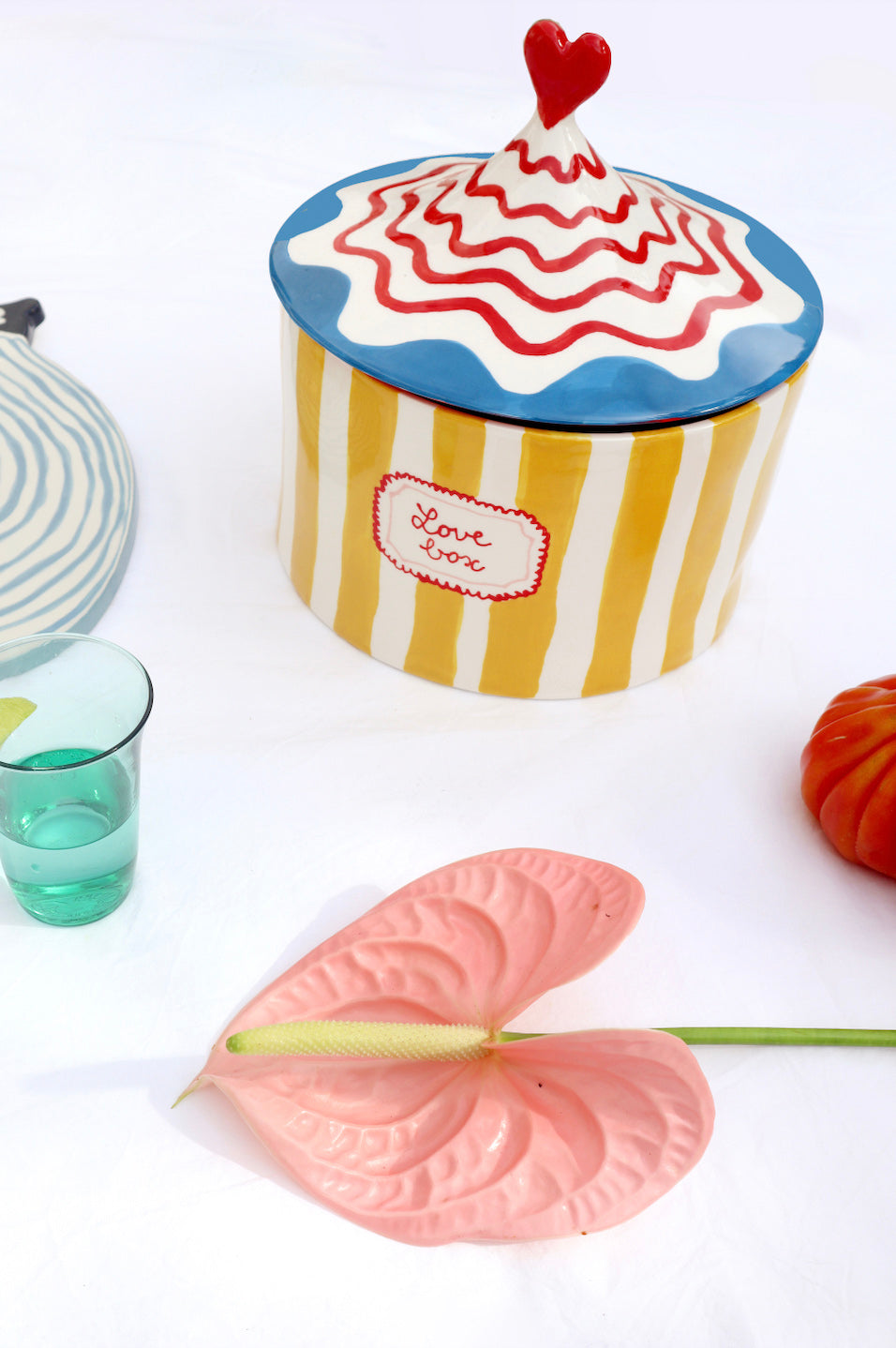 Large earthenware box hand painted with love and naughtiness by artisans in Portugal.