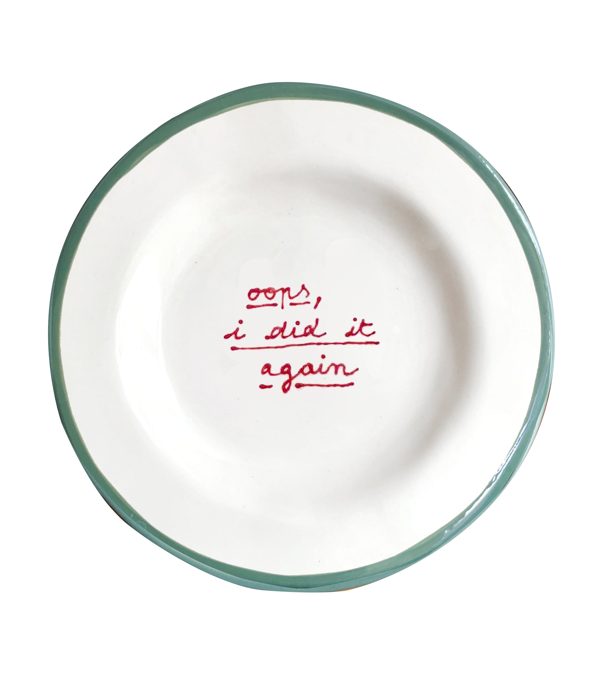 Stoneware dessert plate hand painted with love and naughtiness.